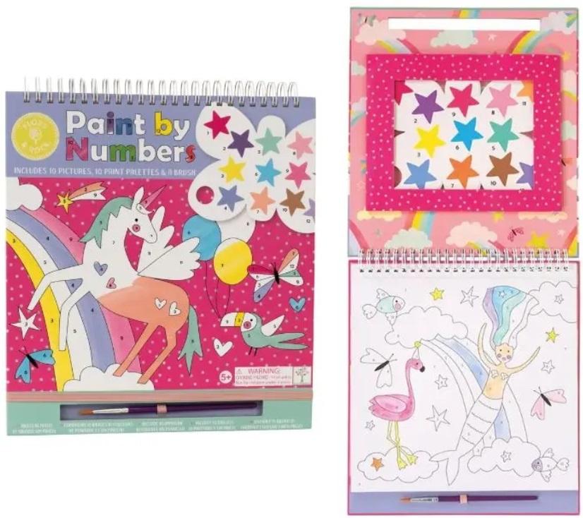 Kolorowanka Maluj po Numerach to doskonały sposób na rozwijanie umiejętności artystycznych dzieci. Dzięki niej maluchy będą mogły tworzyć piękne obrazy, śledząc numery i kolorując odpowiednie obszary. To świetna zabawa, która jednocześnie rozwija zdolności manualne i koncentrację. Początkujący artyści pokochają ten zestaw, ciesząc się godzinami zabawy, tworząc arcydzieła za pomocą dołączonego pędzelka i indywidualnych palet farb (w różnych kształtach, w zależności od wzoru) z ponumerowanymi kolorami pasującymi do ponumerowanych sekcji na obrazkach.                                                                                                                                                                         Zestaw zawiera 10 wyjątkowych kart z obrazkami do pomalowania w spiralnej oprawie. Każda karta ma perforowaną krawędź, dzięki czemu bardzo łatwo ją wyrwać i oprawić w ramkę lub powiesić. Do każdej karty dedykowana jest indywidualna paleta kolorowych farbek. Po zakończeniu zabawy wystarczy zamknąć okładkę, a dzięki elastycznej gumce pędzelek zawsze będzie na swoim miejscu.                                                                                                        Cechy:
