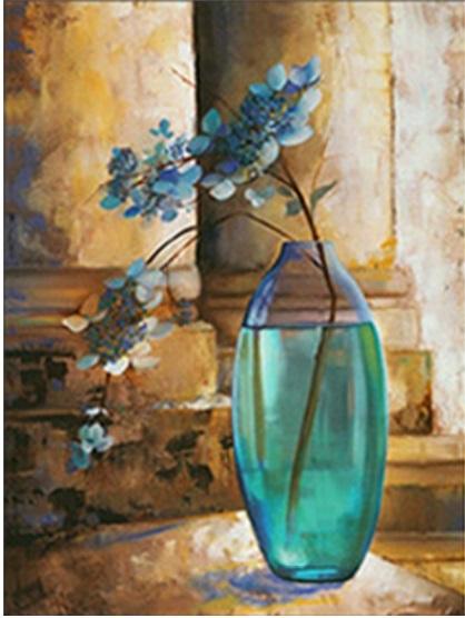 Kwiat w turkusowym wazonie - Kwiaty w tym kolorze są oznaką nowego początku, dlatego bukiet może być świetnym upominkiem na pocieszenie. Spraw sobie obraz lub podaruj komuś.