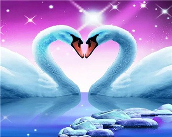 Malowanie po numerach Łabędzie serduszko w fiolecie