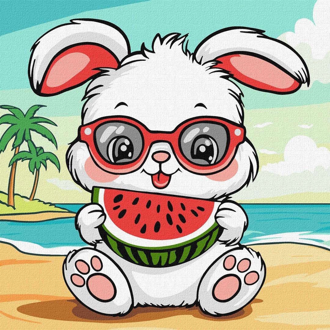 Malowanie po numerach - Lato.Królik z arbuzem
