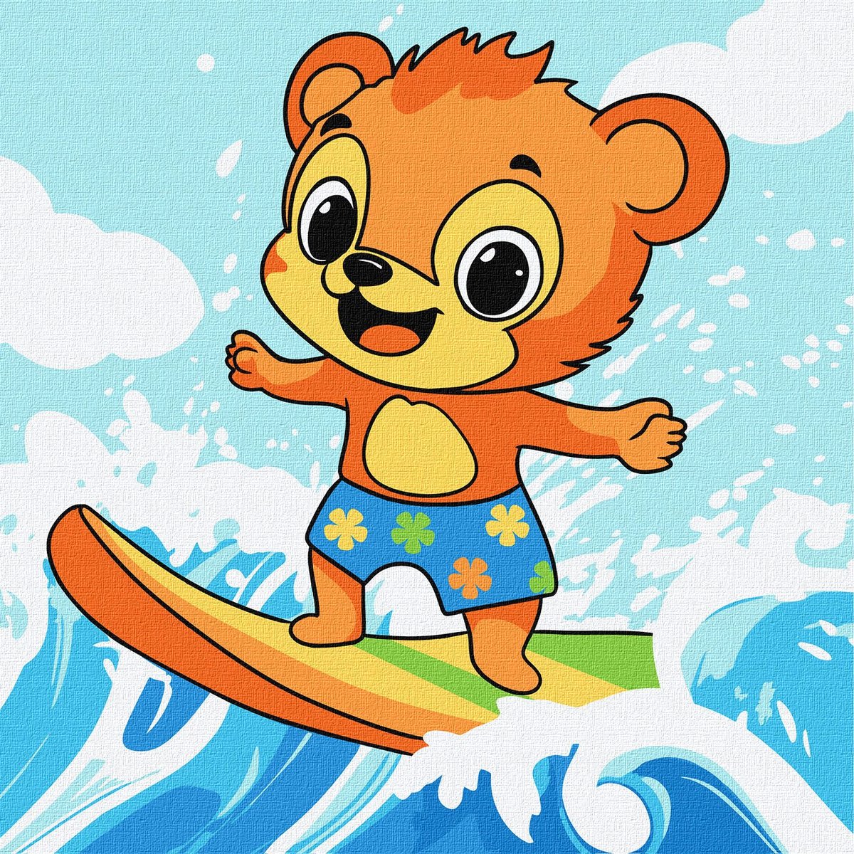 Malowanie po numerach - Lato.Niedźwiedź łapie falę