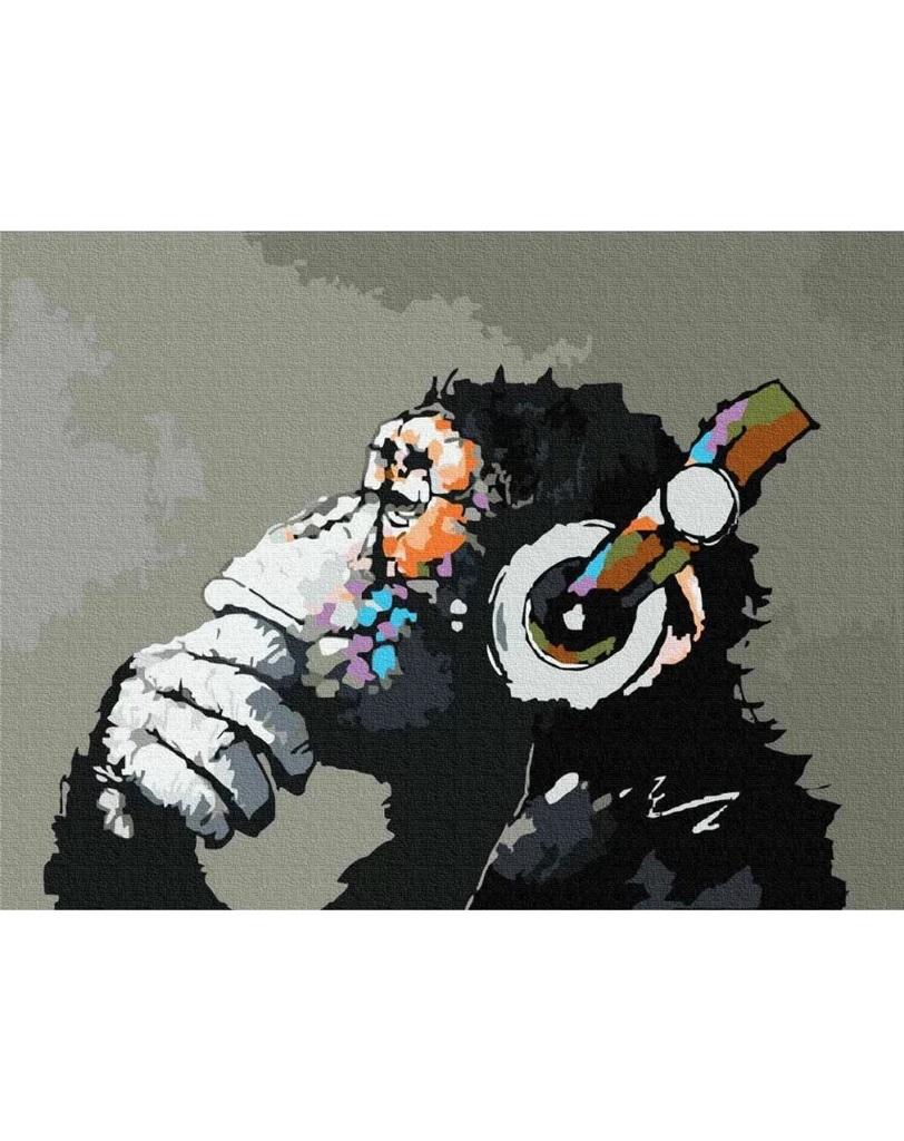 Malowanie po numerach - Małpa w słuchawkach 40x50
