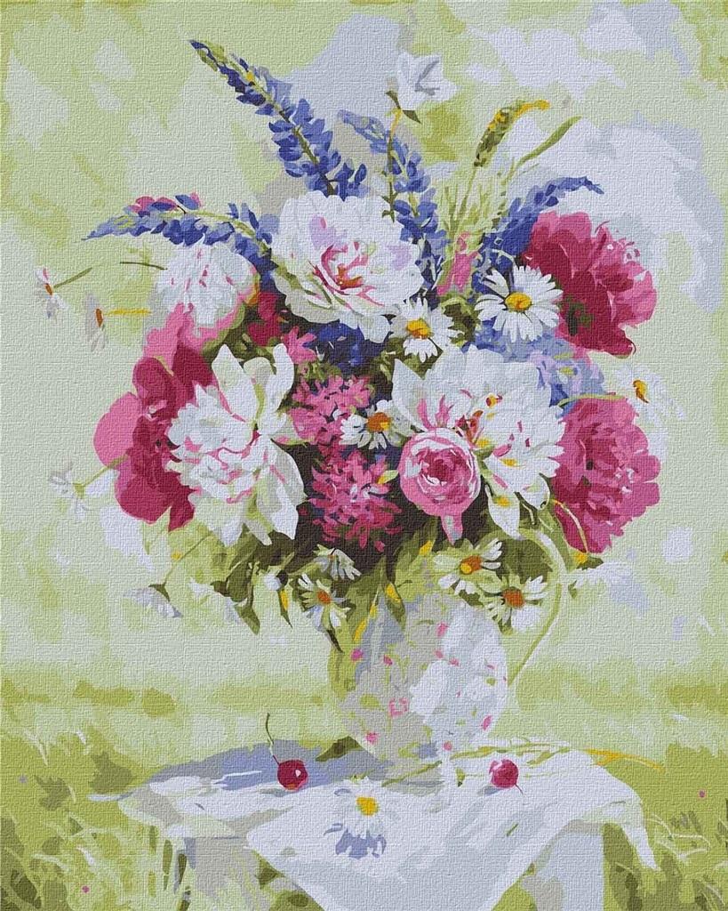 Malowanie po numerach - Martwa natura z piwoniami i łubinami (C)Ira Volkova dla Twojej kreatywności. Wyprodukowano w Ukrainie.