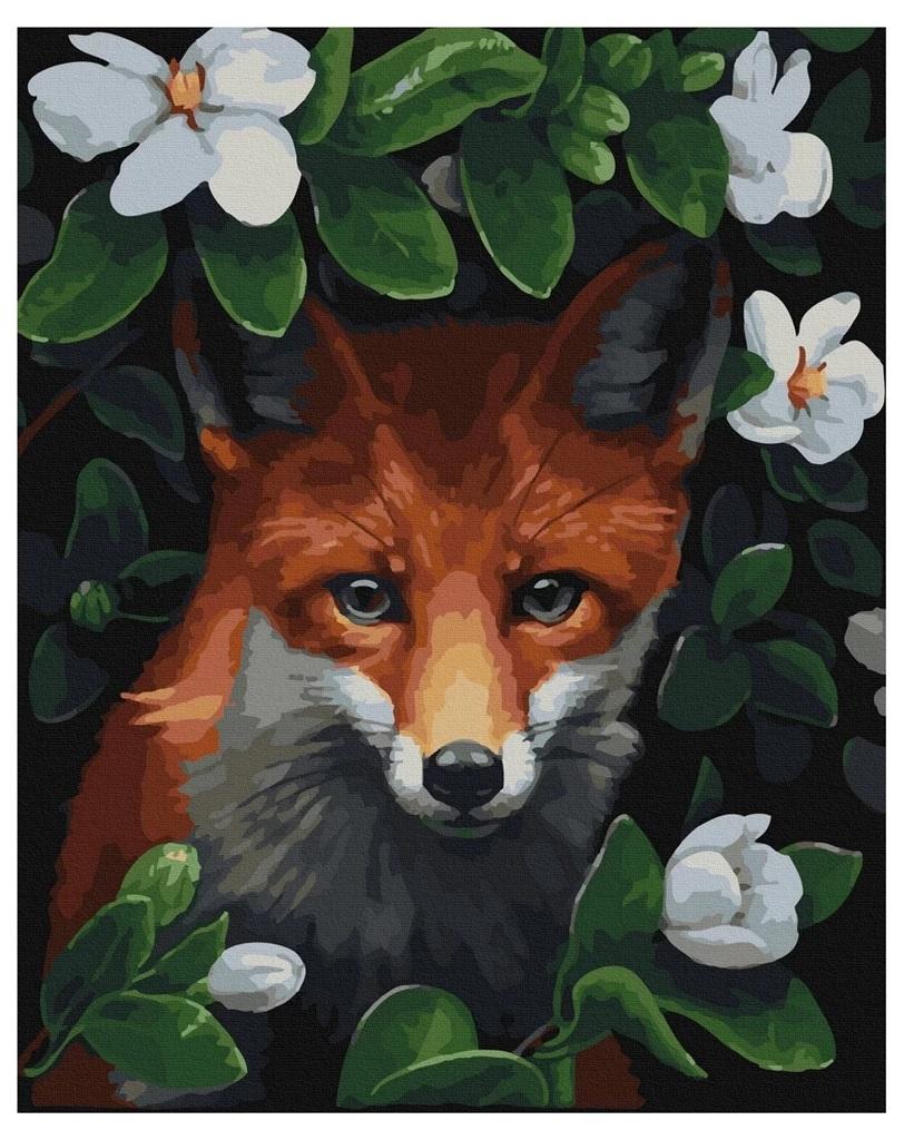 Malowanie po numerach - Młody lis w kwiatach 40x50