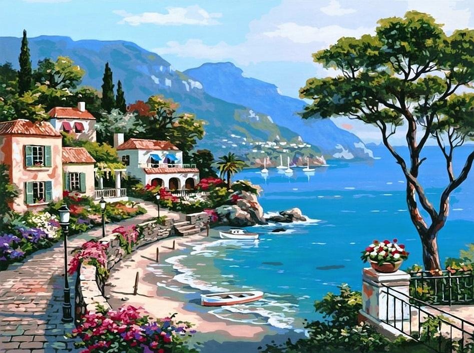 Malowanie po numerach - Nadmorska posesja 40x50cm