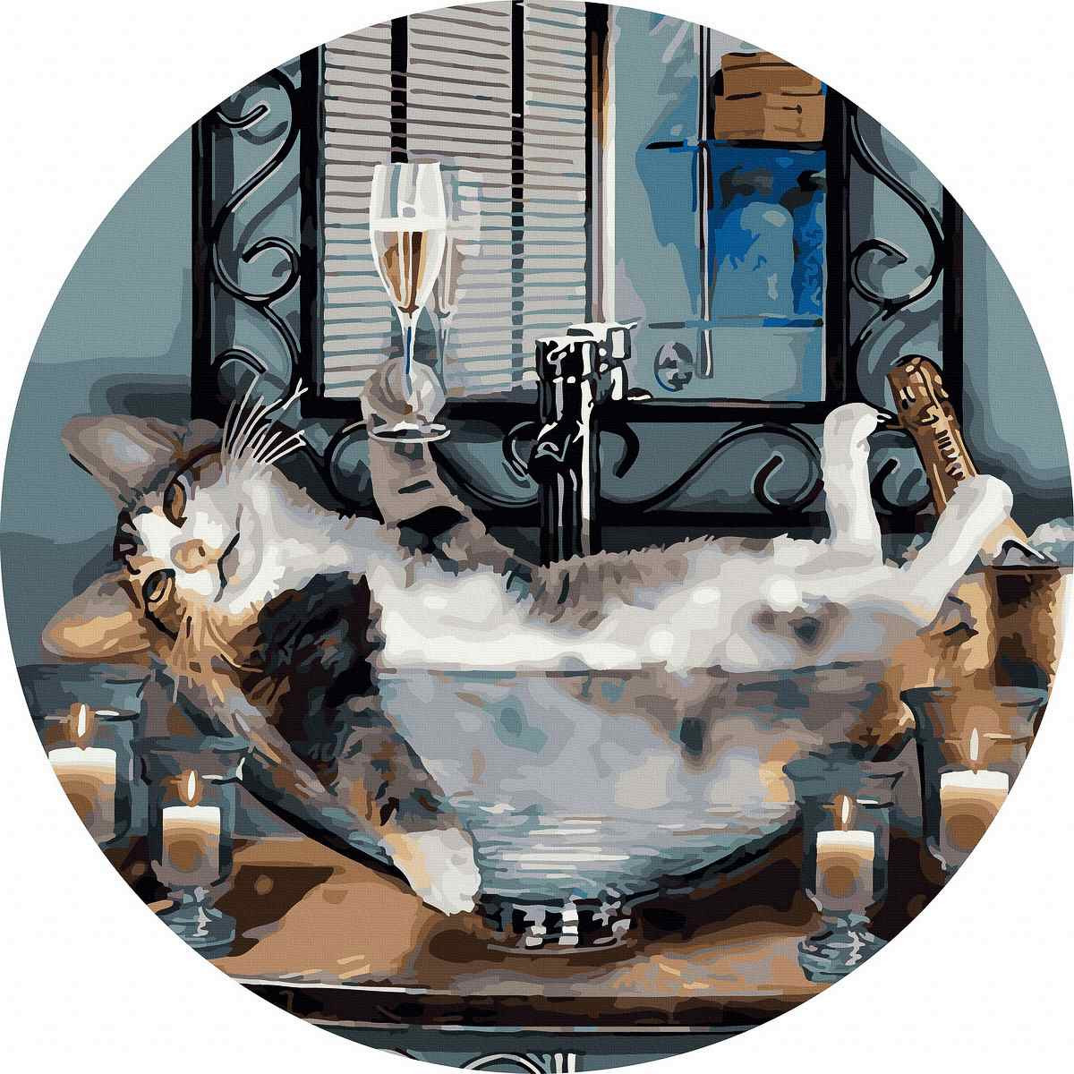 Malowanie po numerach okrągłe - Musujący kot 40cm