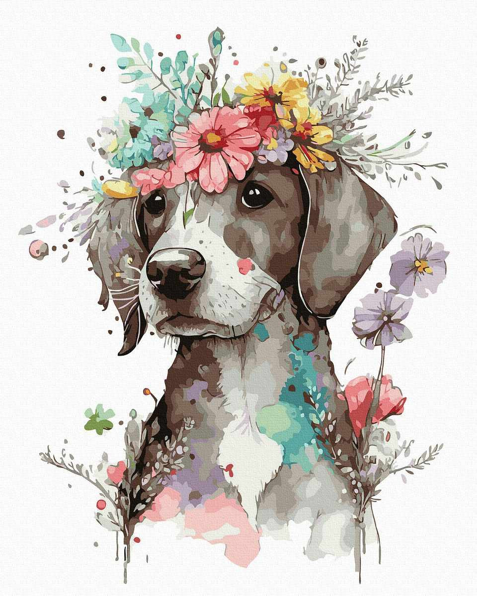 Opakowanie Malowanie po numerach Pies w kwiatach