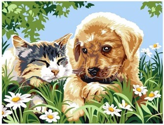 Malowanie po numerach Piesek z kotkiem śpiący na łące
