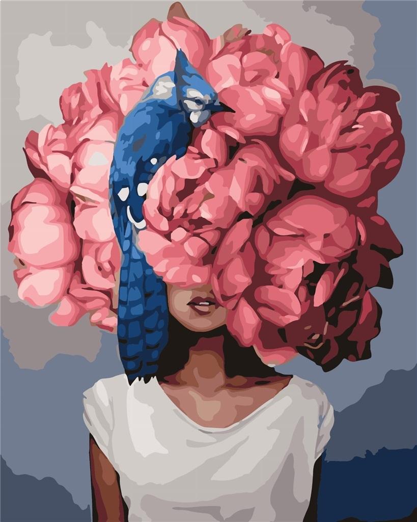 Malowanie po numerach - Piwonie i koliber 40x50cm