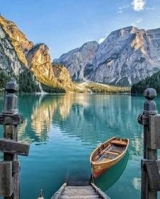 Malowanie po numerach Przystań górskie jezioro łódka