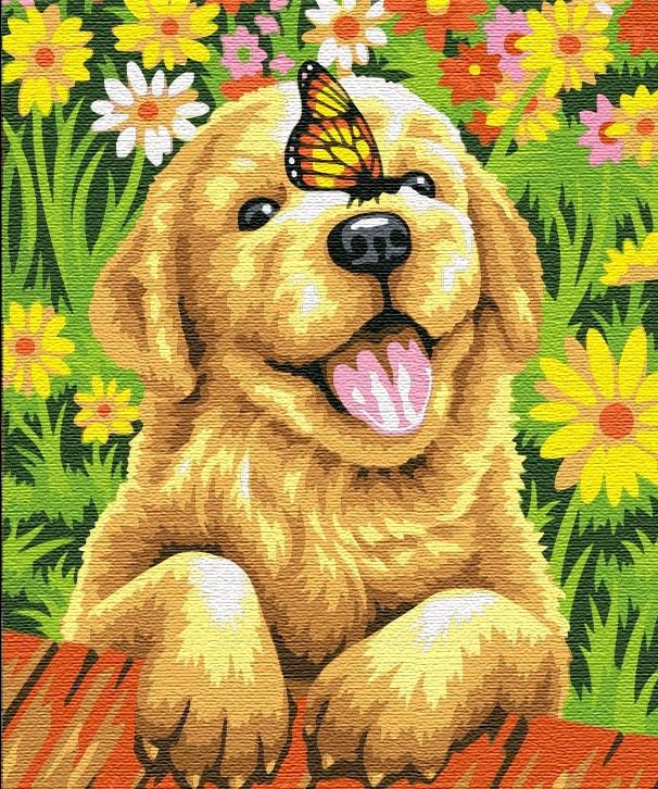 Malowanie po numerach - Radosny szczeniak 40x50cm