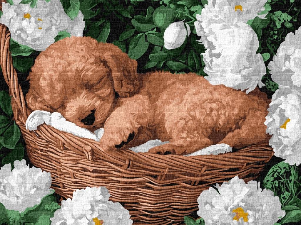 Malowanie po numerach - Śpiący pudel 30x40cm