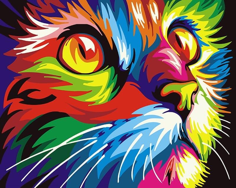 Malowanie po numerach - Tęczowy kotek 40x50cm