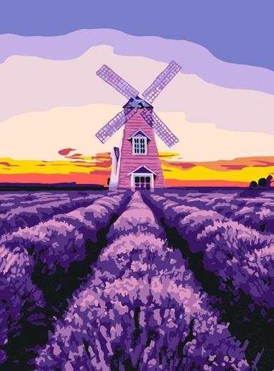 Malowanie po numerach - Wiatrak i lawenda 30x40cm