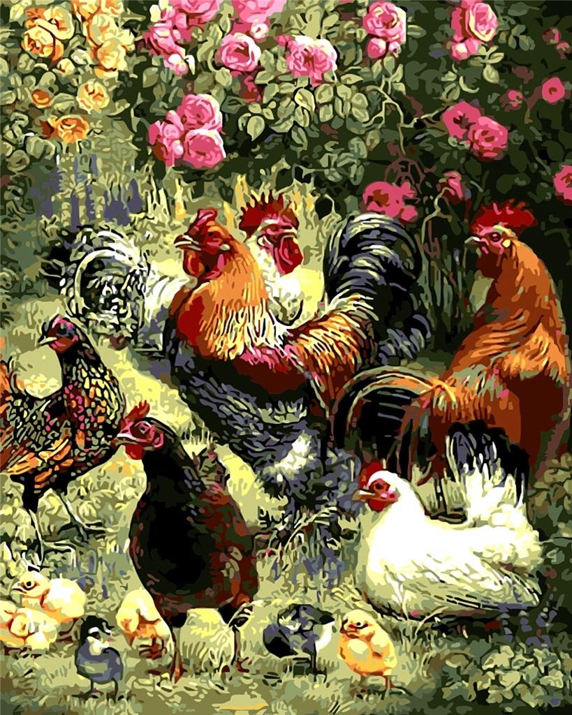 Malowanie po numerach - Wiejskie kury 40x50cm