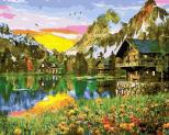 Opakowanie Malowanie po numerach Wieś nad jeziorem górskim