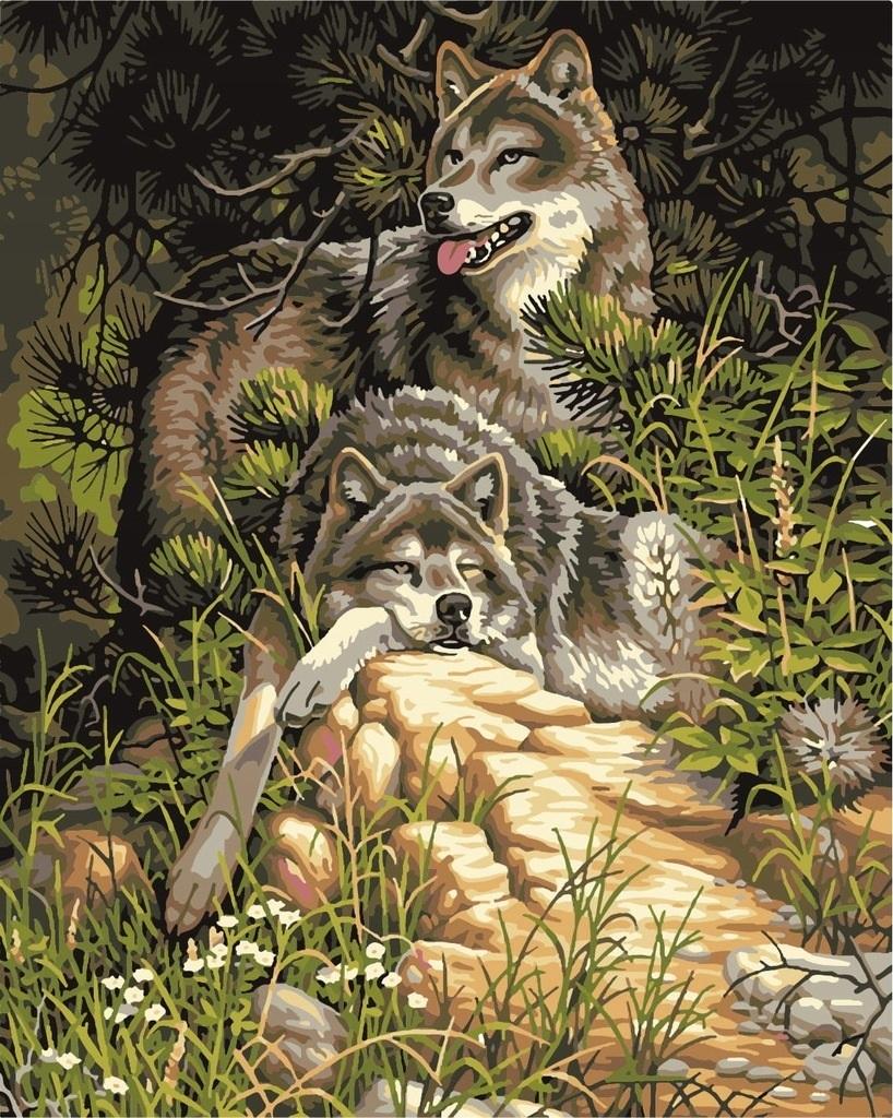 Malowanie po numerach - Wilki w lesie 40x50cm