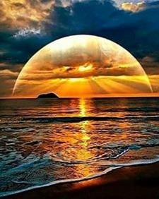Malowanie po numerach Zachód słońca poświata półokrągła nad morzem