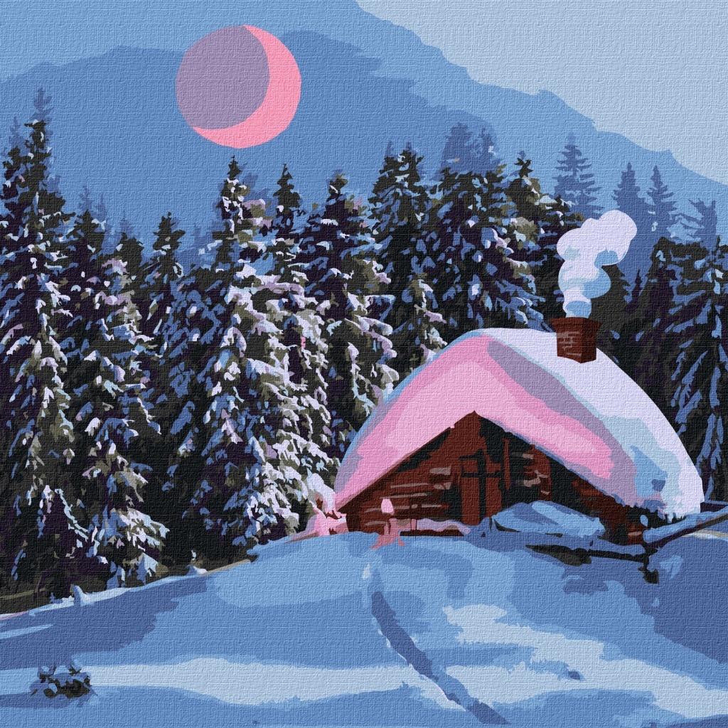 Malowanie po numerach - Zaśnieżona chata 40x40cm