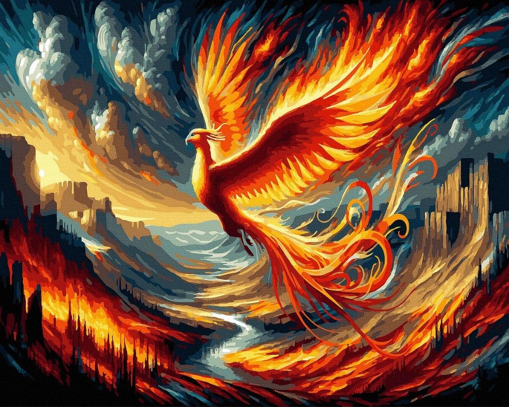 Zawiera: płótno na ramie, ponumerowane farby akrylowe, zestaw pędzli