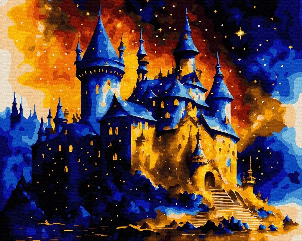 Bajkowy zamek pod rozgwieżdżonym niebem. Obraz zachwyci każdego miłośnika magicznych światów i średniowiecznych legend.