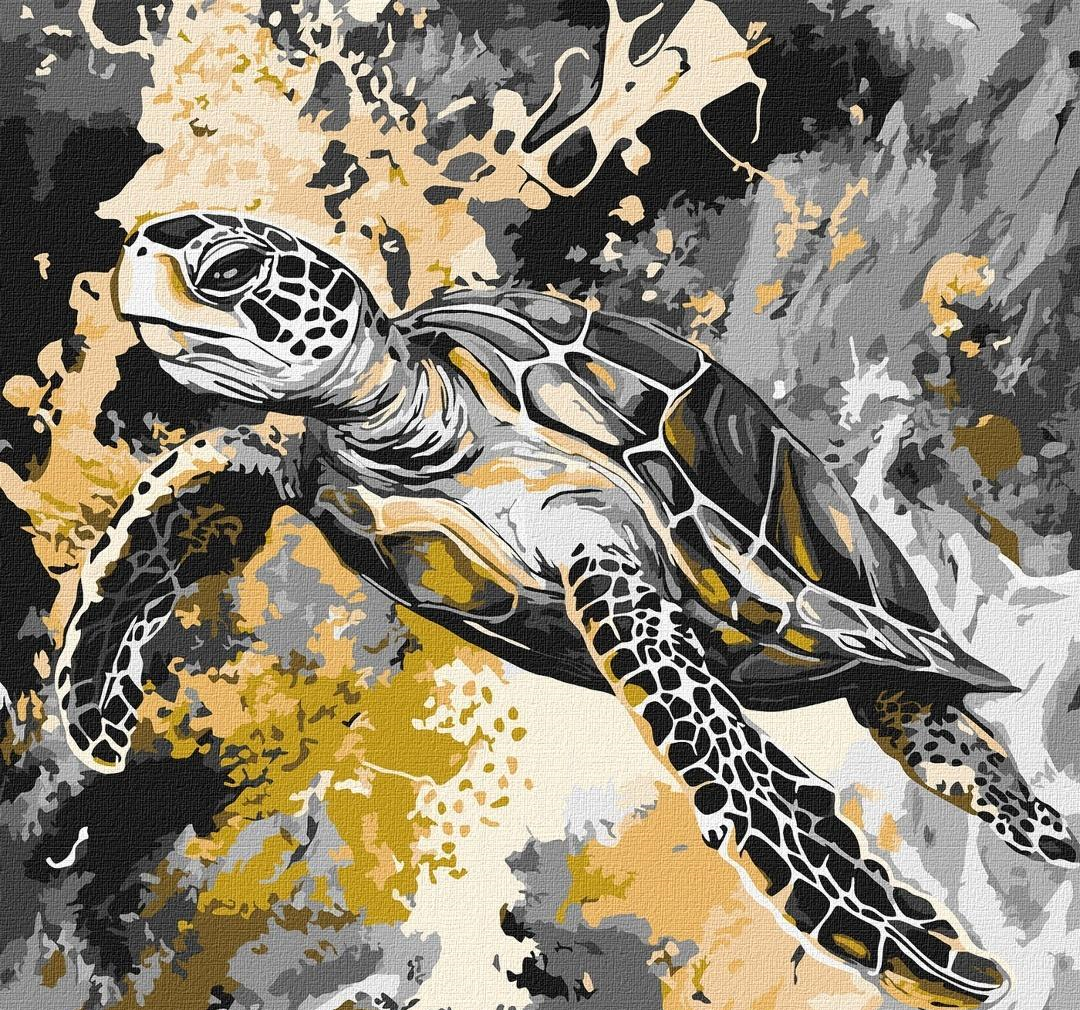Malowanie po numerach - Złoty żółw metal 40x40cm