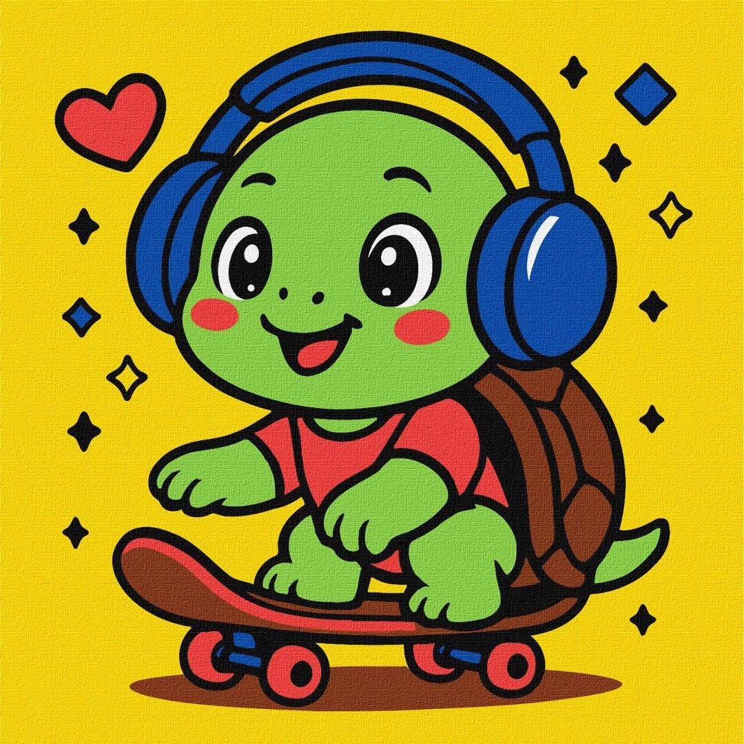Malowanie po numerach - Żółwik na deskorolce 25x25