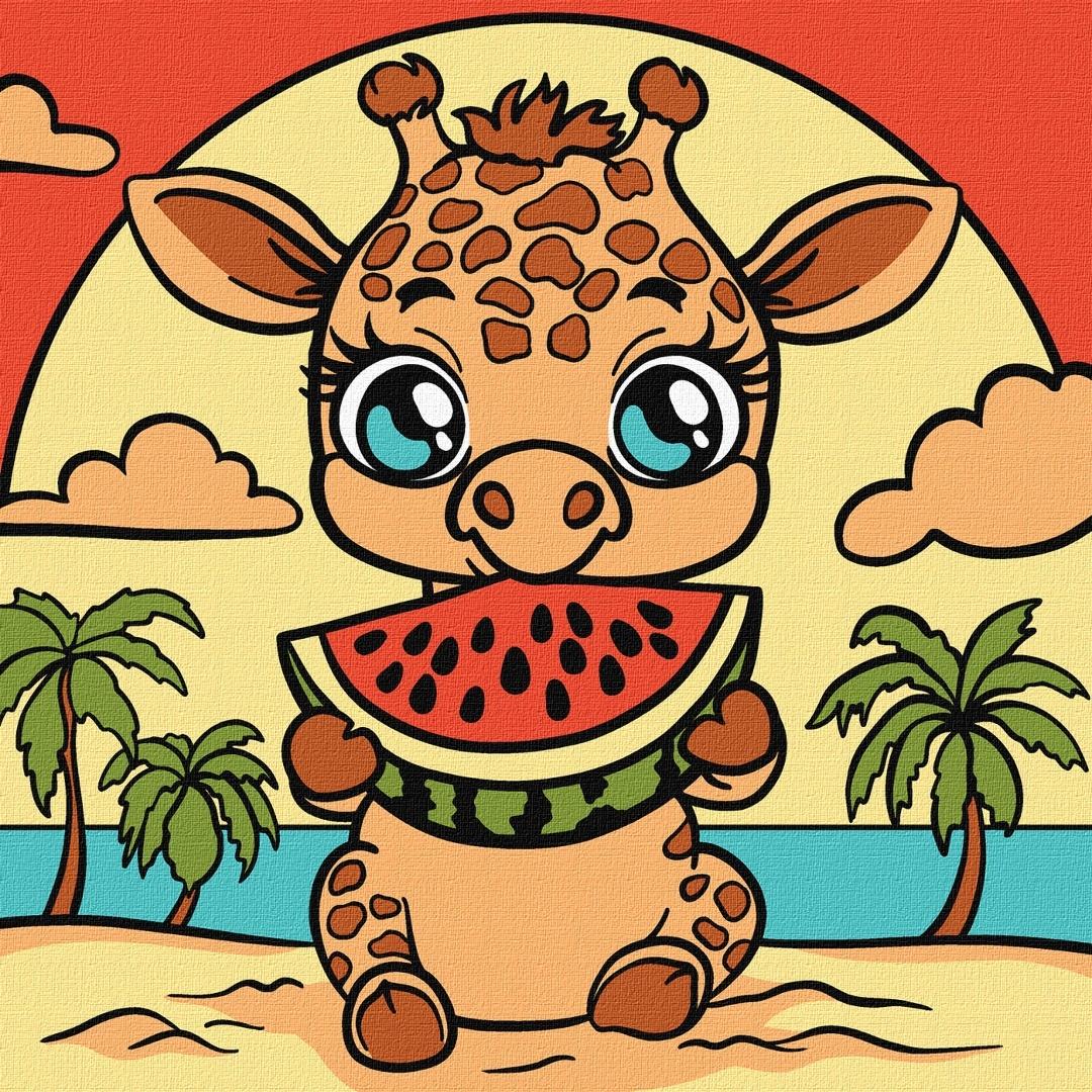 Malowanie po numerach - Żyrafa i arbuz 25x25cm