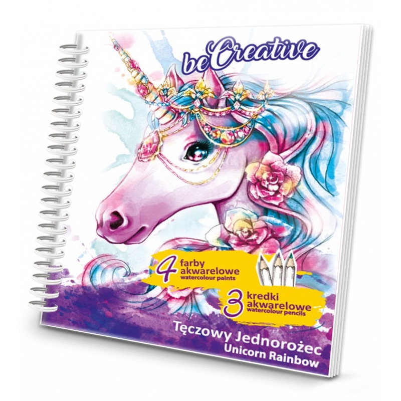 Zawiera szkicownik, 2 inspiracje akwarelowe, kredki akwarelowe, farby akwarelowe i pędzelek.