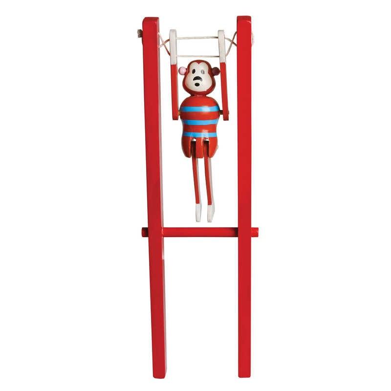 Małpka robi salta na linie po ściśnięciu uchwytów. Zabawka dla dzieci w wieku od 5 lat