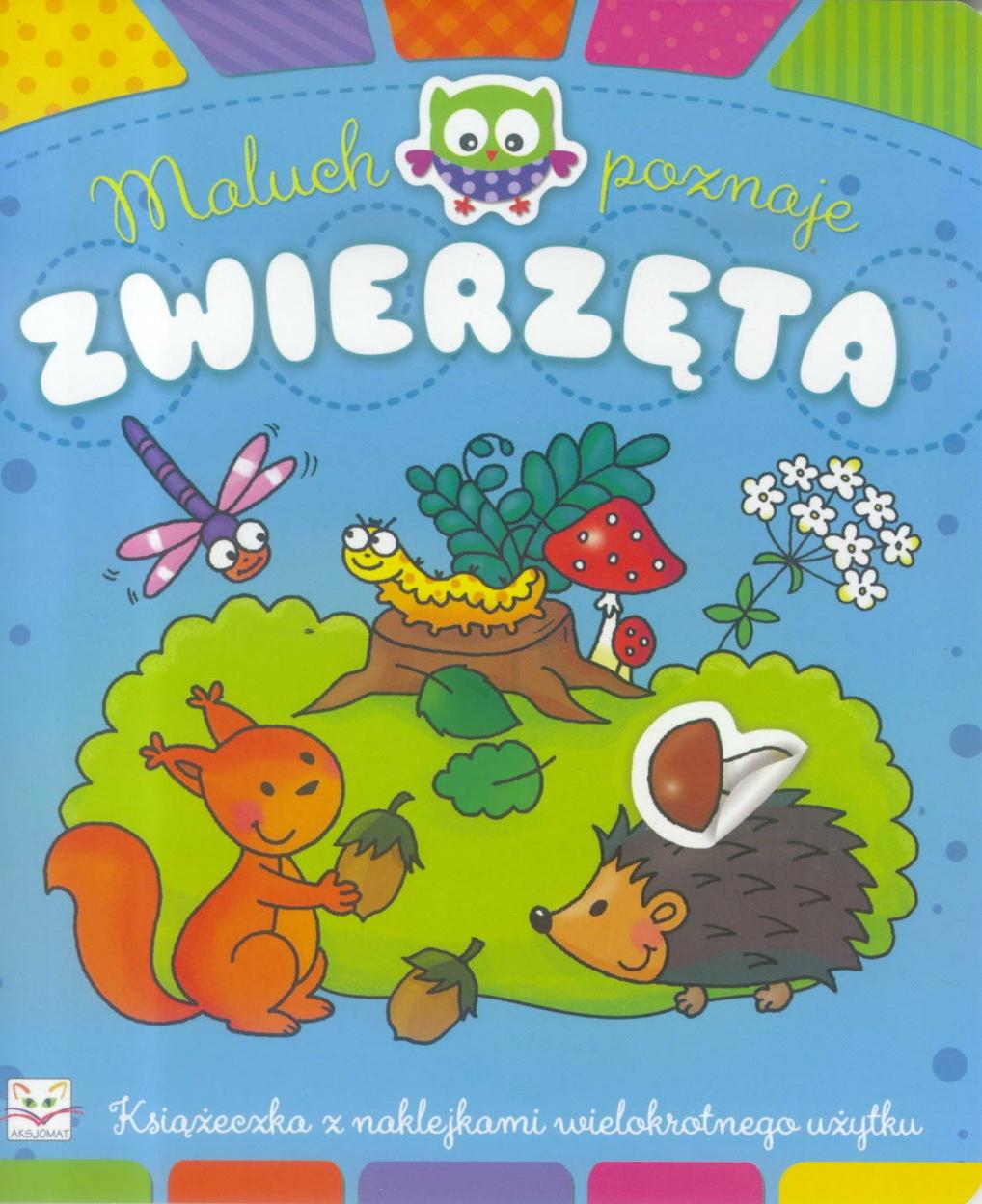 Książeczki na folii z naklejkami wielokrotnego użytku. Dziecko poznaje zwierzęta z różnych środowisk: zoo, łąka, las, wiejska zagroda, staw, przykleja naklejki i rozwiązuje zadania, np. wskazuje mamę i dziecko, łączy zwierzątko z jego domkiem oraz rysuje szlaczki po liniach przerywanych (nieudaną linię można zetrzeć i narysować jeszcze raz). Za poprawnie wykonane zadanie czeka nagroda w postaci naklejki z napisem „Brawo!”.