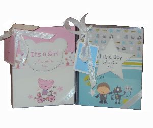Pamiątkowy Album na zdjęcia w kartoniku z kokardką dla chłopca. Wspaniały pomysł na prezent z okazji narodzin synka!