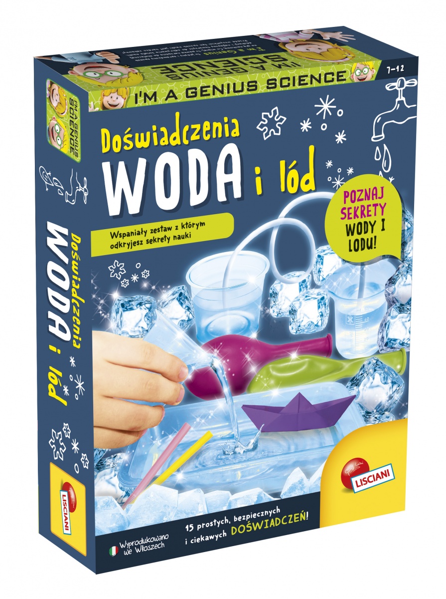 Mały Geniusz Doświadczenia z wodą i lodem to zestaw 15 prostych, bezpiecznych i ciekawych doświadczeń, dzięki którym odkryjemy sekrety nauki. Wykonaj eksperymenty takie jak: skaczące rodzynki, poziom wzroku, bańki lodu, lodowa meduza i wiele więcej! Dla dzieci w wieku od 7 do 12 lat