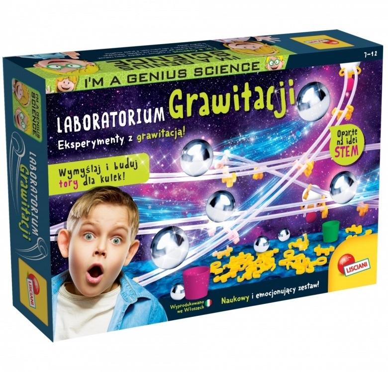 Laboratorium Grawitacji z serii I’m a genius to nowa gra naukowa, która wprowadzi młodych naukowców w świat związany z fizyką i siłami grawitacji. Dzięki ilustrowanemu podręcznikowi dołączonemu do zestawu dzieci mogą złożyć tor kulkowy i w praktyce poznać grawitację poprzez obserwowanie kulek i ich sposobów poruszania się po torze. Wszystkie eksperymenty uszeregowane są według rosnącego stopnia trudności, tak by dziecko stopniowo mogło poznawać dane zagadnienie i rozwijać swoją wiedzę, poznając zarówno teoretyczne, jak i praktyczne aspekty danej dziedziny. Dla dzieci w wieku od 7 do 12 lat