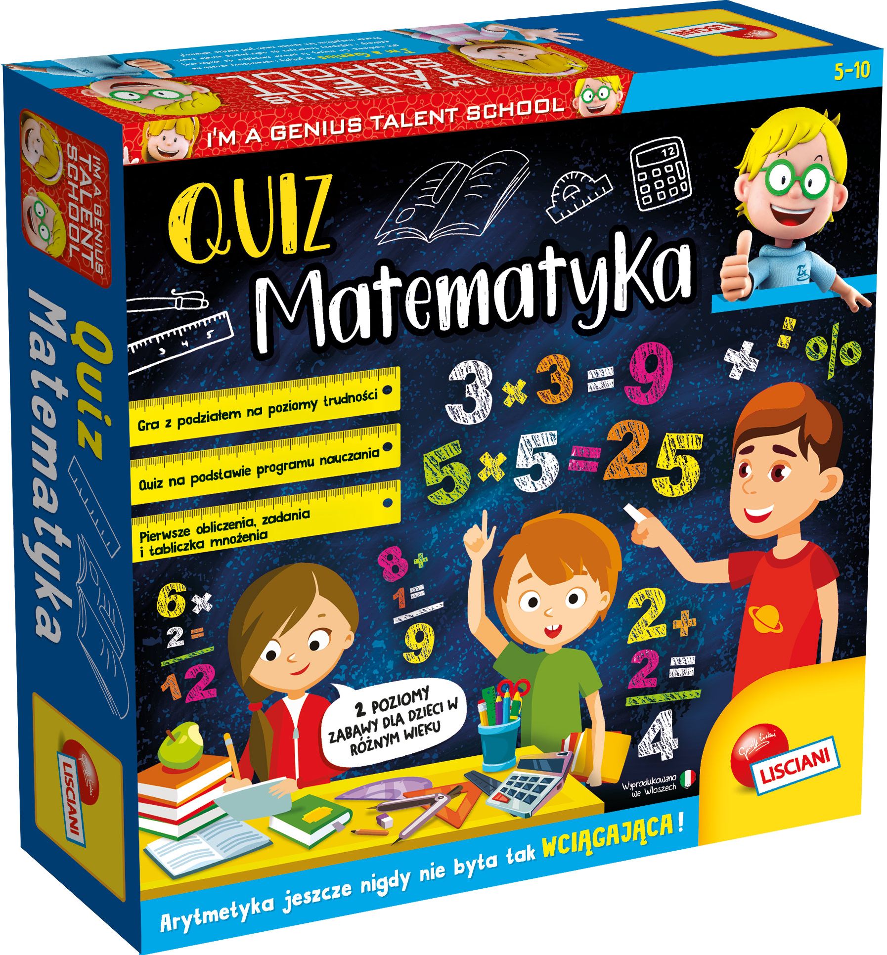 Gra rozwijająca wiedzę z arytmetyki i tabliczki mnożenia. W grze odpowiadamy na pytania i przesuwamy swój pionek po planszy, zdobywając przy tym specjalne odznaki. Quiz z pytaniami został przygotowany na podstawie programu nauczania w szkole podstawowej i jest podzielony na trzy poziomy trudności. Opakowanie zawiera instrukcję.