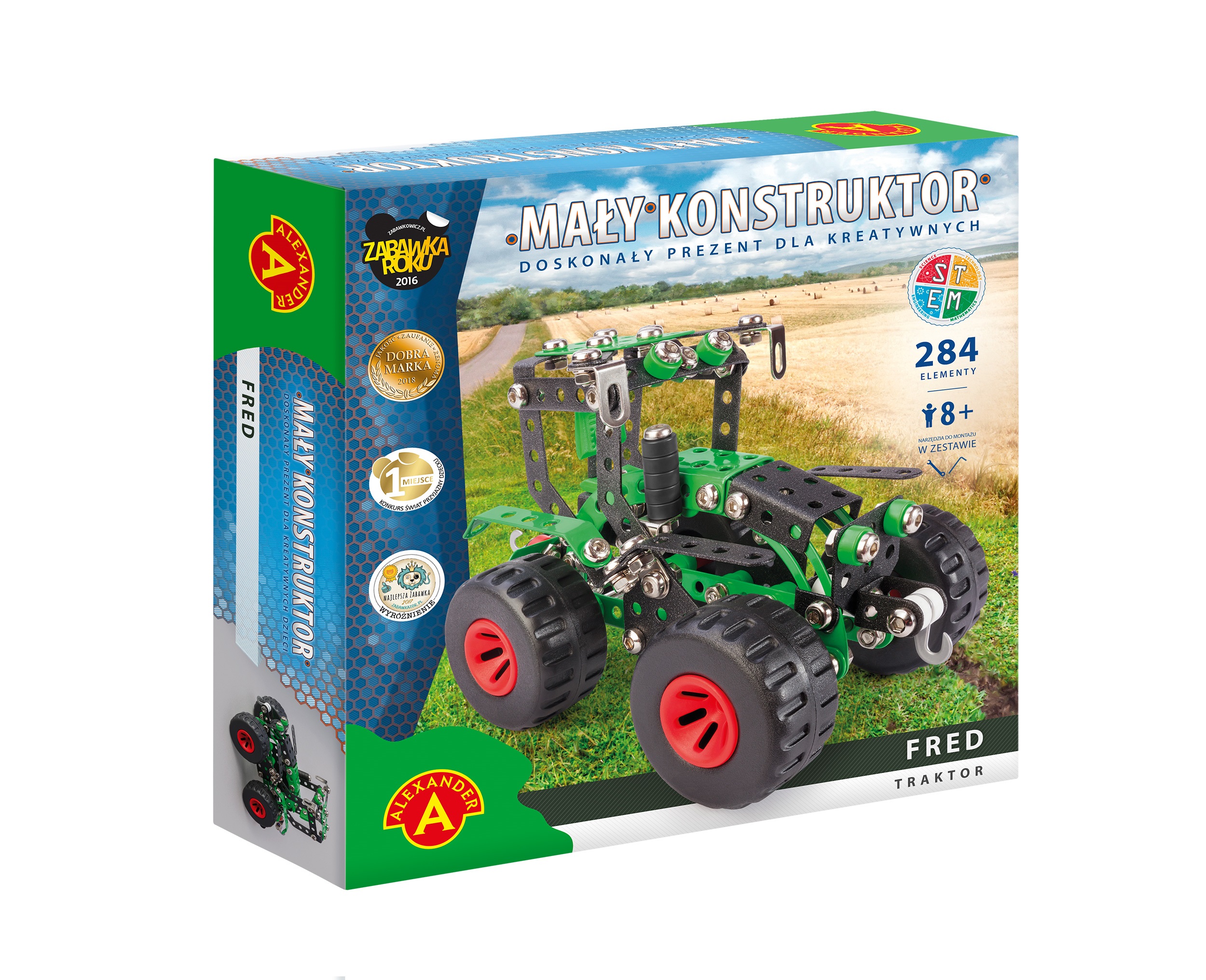 Mały Konstruktor to seria zabawek do samodzielnego montażu, rozwijająca zdolności manualne oraz wyobraźnię przestrzenną. Każdy model składa się z elementówmetalowych o różnej wielkości i kształtach, a także jest wzbogacony kolorowymi elementami z tworzyw sztucznych. Dzięki dołączonemu zestawowi narzędzi, możnazbudować wyjątkowy pojazd zgodnie ze wskazaniami instrukcji lub wedle własnej wyobraźni. Model po złożeniu jest trwały i swobodnie może służyć do dalszejzabawy. To idealny wstęp do rozbudzenia w dziecku pasji inżyniera. Zabawka która łączy pokolenia, zachęcając do wspólnego majsterkowania. "