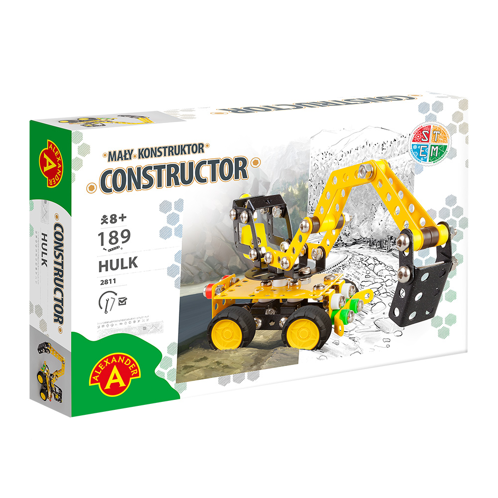 Mały Konstruktor to seria zabawek do samodzielnego montażu, rozwijająca zdolności manualne oraz wyobraźnię przestrzenną. Każdy model składa się z elementów metalowych o różnej wielkości i kształtach, a także jest wzbogacony kolorowymi elementami z tworzyw sztucznych. Dzięki dołączonemu zestawowi narzędzi, można zbudować wyjątkowy pojazd zgodnie ze wskazaniami instrukcji lub wedle własnej wyobraźni. Model po złożeniu jest trwały i swobodnie może służyć do dalszej zabawy. To idealny wstęp do rozbudzenia w dziecku pasji inżyniera. Zabawka która łączy pokolenia, zachęcając do wspólnego majsterkowania.