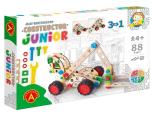 Mały Konstruktor Junior 3in1 FORKLIFT TRUCK to ponadczasowa zabawka konstrukcyjna do samodzielnego montażu skierowana do dzieci w wieku od 4 lat. Zestaw składa się z drewnianych deseczek z dziurkami oraz kolorowych śrubek i łączników z tworzywa. Duże rozmiary elementów oraz uproszczona konstrukcja sprawiają, że dzieci już od najmłodszych lat mogą próbować sił w składaniu pierwszych pojazdów. Zabawka jest trwała i po złożeniu pojazd może służyć do dalszej zabawy. Zestaw wyposażony jest w narzędzia idealnie dopasowane do małych rączek, dzięki którym malec może wielokrotnie skręcać i rozkręcać konstrukcję. Z zawartych w opakowaniu elementów można zbudować aż trzy zupełnie różne pojazdy. Po skręceniu zabawki malec może przez jakiś czas bawić się nią, a kiedy znudzi mu się, może rozmontować wszystkie komponenty i zbudować zupełnie nowy model. Zabawka wspaniale wpływa na rozwój motoryki małej, rozwija cierpliwość oraz stymuluje wyobraźnię. Doskonale wspomaga naukę kolorów oraz liczenia. Wyjątkowa estetyka produktu i jakość wykonania umilają zabawę. Wszystkie komponenty wchodzące w skład produktu wytwarzane są w fabryce Alexandra.