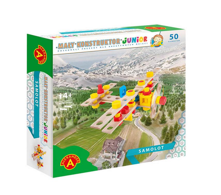 Ponadczasowa zabawka do samodzielnego montażu skierowana do dzieci w wieku od 4 lat. Zestaw składa się z drewnianych deseczek z dziurkami oraz kolorowych śrubek i łączników z tworzywa. Duże rozmiary elementów oraz uproszczona konstrukcja sprawiają, że dzieci już od najmłodszych lat mogą próbować sił w składaniu pierwszych pojazdów. Zabawka jest trwała i po złożeniu pojazd może służyć do dalszej zabawy. Zestaw wyposażony jest w narzędzia idealnie dopasowane do małych rączek, dzięki którym malec może wielokrotnie skręcać i rozkręcać konstrukcję. Zabawka wspaniale wpływa na rozwój motoryki małej, rozwija cierpliwość oraz stymuluje wyobraźnię. Doskonale wspomaga naukę kolorów oraz liczenia. Wyjątkowa estetyka produktu i jakość wykonania umilają zabawę. Wszystkie komponenty wchodzące w skład produktu wytwarzane są w fabryce Alexandra.