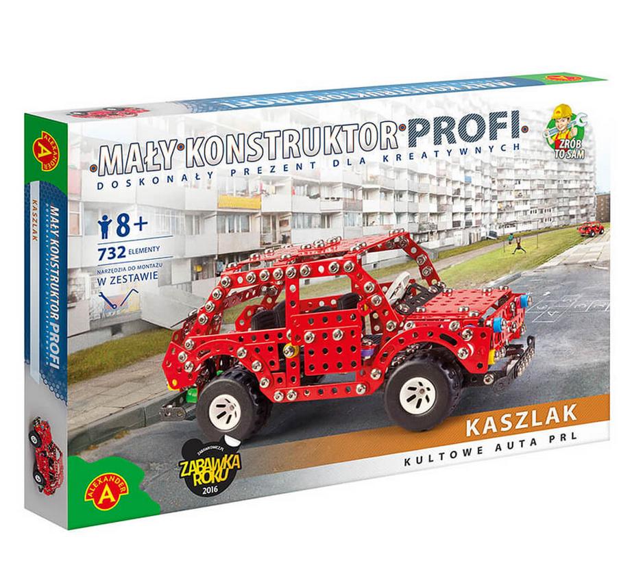 "Mały Konstruktor" to zabawka do samodzielnego montażu. Każdy model składa się z różnej wielkości i kształtów elementów metalowych, a także jest wzbogacony kolorowymi elementami z tworzyw sztucznych. Zestaw wyposażony jest w narzędzia, którymi można skręcić i rozkręcić pojazd. Elementy zestawów można ze sobą łączyć tworząc własne konstrukcje. Zabawki z tej serii rozwijają zdolności manualne, wyobraźnię przestrzenną, umiejętności techniczne i cierpliwość oraz pomagają kształtować proces zapamiętywania. To idealna zabawka dla przyszłych inżynierów i nie tylko.