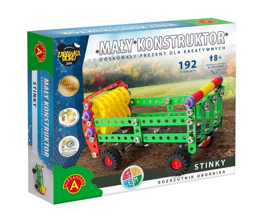 ""Mały konstruktor"" to zabawka do samodzielnego montażu. Każdy model składa się z różnej wielkości i kształtów elementów metalowych, a także jest wzbogacony kolorowymi elementami z tworzyw sztucznych. Zestaw wyposażony jest w narzędzia, którymi można skręcić i rozkręcić pojazd. Elementy zestawów można ze sobą łączyć tworząc własne konstrukcje. Zabawki z tej serii rozwijają zdolności manualne, wyobraźnię przestrzenną, umiejętności techniczne i cierpliwość oraz pomagają kształtować proces zapamiętywania. To idealna zabawka dla przyszłych inżynierów i nie tylko.