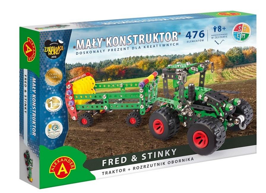 Zestaw składający się z traktora oraz rozrzutnika obornika. Produkt wchodzi w skład serii maszyny rolnicze. Zabawka może służyć jako pojedynczy model do zabawy, albo stać się podstawą do zbudowania całego parku maszynowego niezbędnego do pracy na gospodarstwie. W serii ukazały się następujące maszyny wspomagające, które można doczepić do traktora: Betty (prasa do siana), Helen (zgrabiarka do siana), Emily (talerzówka), Jacob (opryskiwacz), Wiliam (pług obrotowy). Mały Konstruktor to seria zabawek do samodzielnego montażu, rozwijająca zdolności manualne oraz wyobraźnię przestrzenną. Każdy model składa się z elementów metalowych o różnej wielkości i kształtach, a także jest wzbogacony kolorowymi elementami z tworzyw sztucznych. Dzięki dołączonemu zestawowi narzędzi, można zbudować wyjątkowy pojazd zgodnie ze wskazaniami instrukcji lub wedle własnej wyobraźni. To idealny wstęp do rozbudzenia w dziecku pasji inżyniera. Zabawka która łączy pokolenia, zachęcając do wspólnego majsterkowania.