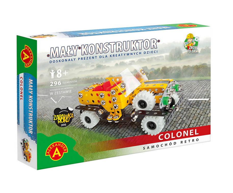 Mały Konstruktor to seria zabawek do samodzielnego montażu, rozwijająca zdolności manualne oraz wyobraźnię przestrzenną. Każdy model składa się z elementów metalowych o różnej wielkości i kształtach, a także jest wzbogacony kolorowymi elementami z tworzyw sztucznych. Dzięki dołączonemu zestawowi narzędzi, można zbudować wyjątkowy pojazd zgodnie ze wskazaniami instrukcji lub wedle własnej wyobraźni. Model po złożeniu jest trwały i swobodnie może służyć do dalszej zabawy. To idealny wstęp do rozbudzenia w dziecku pasji inżyniera. Zabawka która łączy pokolenia, zachęcając do wspólnego majsterkowania.