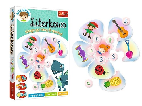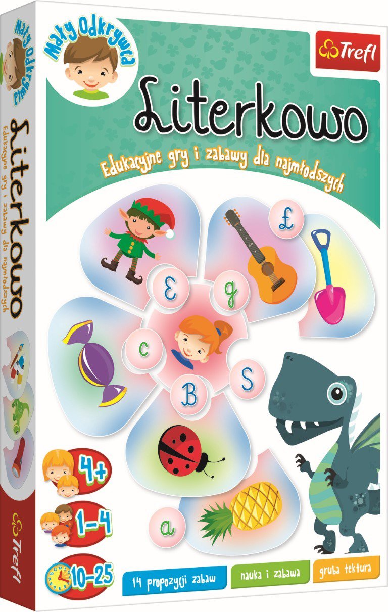 Literkowo to wesoła zabawa w dopasowywanie literek i wyrazów do obrazków w nowej, innowacyjnej formule. W ciekawy i angażujący sposób rozwija słownictwo u najmłodszych dzieci, uczy rozpoznawania liter i kojarzenia ich z nazwami przedmiotów, pomaga także rozwijać umiejętność budowania poprawnych odpowiedzi. W grze wykorzystano słownictwo związane z otoczeniem i zainteresowaniami dzieci zilustrowane w kolorowy i czytelny dla nich sposób, a także litery pisane, dające dobry wzorzec w przyszłej edukacji wczesnoszkolnej. Dostarcza wielu pomysłów na zabawę - dziecko ma możliwość gry w pojedynkę, jak również w grupie rówieśników lub z opiekunem. Wiek graczy: 4+