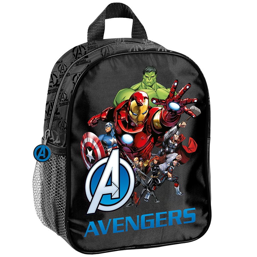 Mały plecak przedszkolny, jedna komora, jedna boczna kieszeń z siatki (mieści małą butelkę, bidon lub termos).