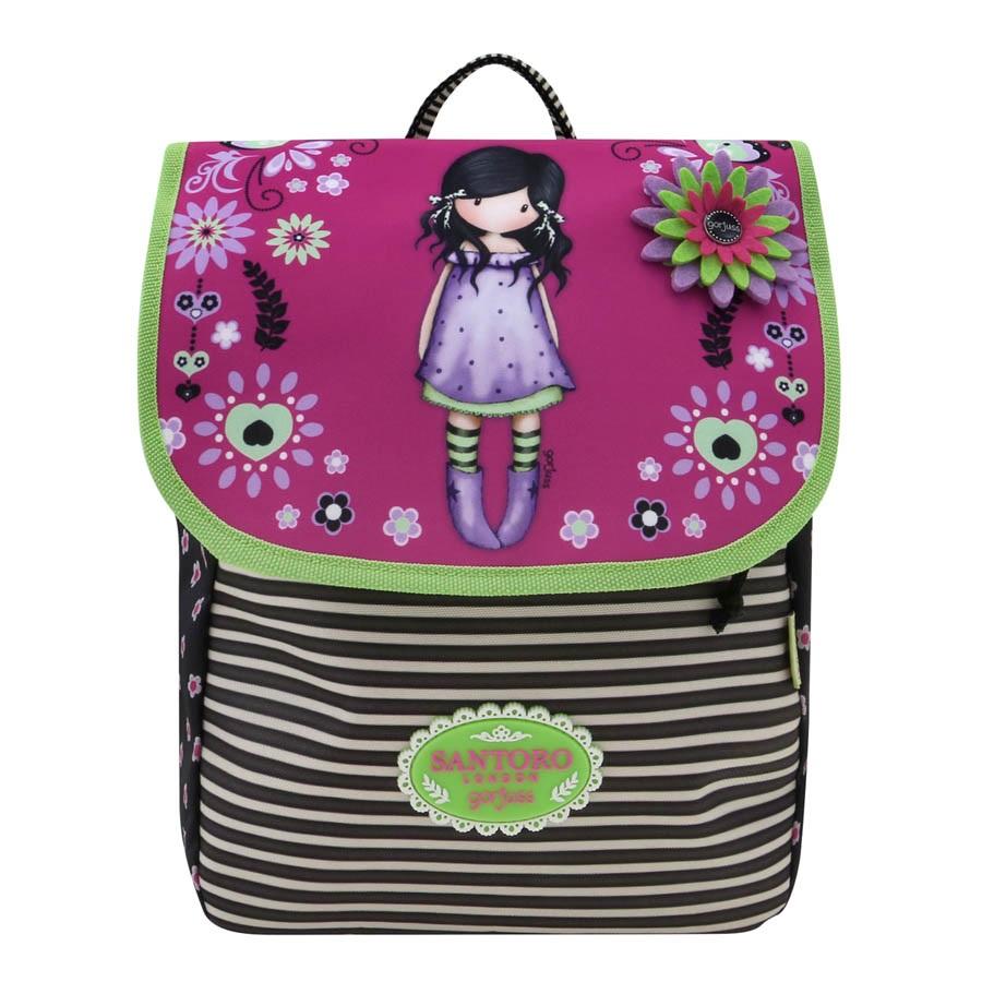 Mały Plecak - Gorjuss - You Brought Me Love Wyjątkowo praktyczny i piękny plecak z wizerunkiem dziewczynki Gorjuss w odcieniach magenty, bzu i limonki. Ma miękkie i wygodne pasy do założenia na plecy z regulacją długości. Oddzielny uchwyt do podnoszenia. Przestronne wnętrze ozdobione impregnowaną podszewką ze stylowymi paskami. Kieszeń przeznaczona na większe elementy. Dodatkowo kieszeń na suwak. Oddzielna kiszonka na telefon. Klapa zapinana na magnes. Ozdobiony filcową zawieszką. Rozmiar: 32cm. x 30cm. x 10cm.
