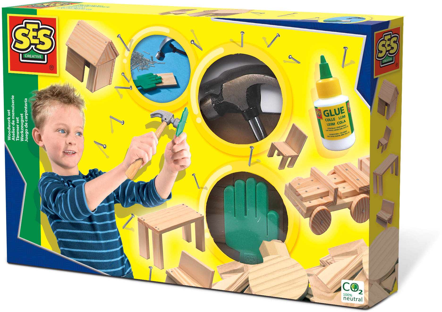 W zestawie MAŁEGO STOLARZA dziecko ma do dyspozycji prawdziwe akcesoria stolarskie - jak w prawdziwym warsztacie. Znajdzie tu różnej wielkości deseczki, młotek gwoździki i klej. Zestaw jest skonstruowany tak by zapewnić dziecku bezpieczna zabawę - do wbijania gwoździ załączona jest specjalna łapka, która podtrzymuje gwoździk zamiast paluszków dziecka. Można budować modele takie jak na opakowaniu lub tworzyć własne kompozycje. Zestaw zawiera: drewniane deseczki, kołki, kółka, młotek, gwoździe, klej, łapkę do wbijania gwoździ. Zestaw odpowiedni dla dzieci w wieku 5+ przy bezpośredniej asyście osoby dorosłej. Wyprodukowano w Holandii.