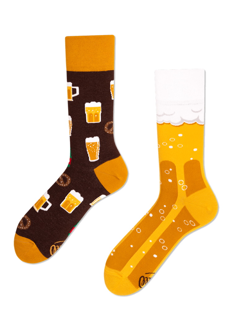 Orzeźwiające, mocno schłodzone, naturalnie dobre- oto skarpetki dla prawdziwych smakoszy piwa. Kufle pełne napoju i zakąski- precelków sprawdzą się idealnie jako kompan na imprezę ze znajomymi, przyjaciółmi. Lubią domówki, zabawy i towarzystwo.