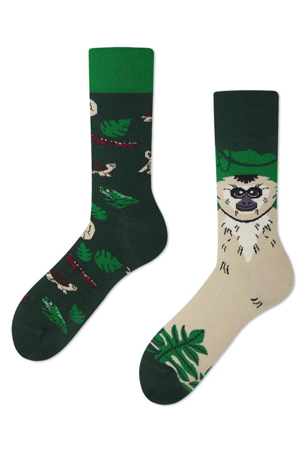 Wyskocz z nudy - giboniem! Te skarpetki to hołd dla najzabawniejszych akrobatów dżungli. Gibony, huśtawki na lianach i tropikalny klimat - idealne dla wszystkich, którzy chcą dodać energii każdemu krokowi. Załóż i podskocz z radości – bo życie to czasem jedna wielka huśtawka!