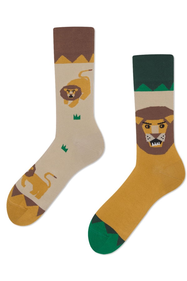 Król dżungli też czasem lubi się polenić! Skarpetki Lion Around to idealny wybór na dni, kiedy chcesz tylko leżeć, mruczeć i wyglądać dumnie. Załóż je i pokaż, że relaks to też siła!